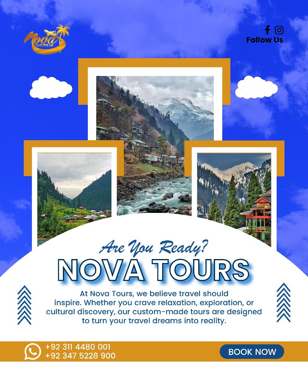 Nova Tours Peshawar is your trusted travel agency for unforgettable trips from Peshawar to Pakistan’s breathtaking northern areas. We offer tour packages to Naran Kaghan, Babusar Top, Saiful Malook Lake, Hunza, Skardu, Kalaam, Malam Jabba, Murree, and Nathia Gali. Whether you're planning a family getaway, a company retreat, group tour, or honeymoon, our customized travel plans ensure a smooth, safe, and scenic experience. Book your next adventure with Nova Tours — explore the beauty of Pakistan like never before!